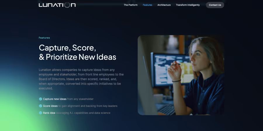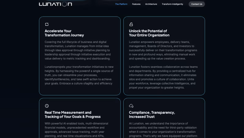 Lunation is an AI and cloud-enabled platform that improves a company's odds of transformation success. The client comes to us with a request to do code-refactoring and make his current website fresh and modern.